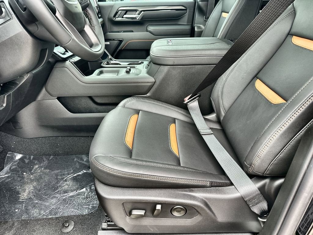 AT4 Preferred Package (LED Smoked Amber Roof Marker Lamps, Power Sliding Rear Window with Defogger, and Universal Home Remote), AT4 Premium Plus Package (Power Sunroof), Gooseneck/5th Wheel Prep Package, Preferred Equipment Group 4SB (120-Volt Bed Mounted Power Outlet, 120-Volt Instrument Panel Power Outlet, 2 Charge-Only Rear USB Ports, 2 Charge/Data USB Ports Inside Center Console, 2 USB Ports, 2-Speed Active Transfer Case, Bed View Camera with Two Trailer Camera Provisions, Bose Premium 7-Speaker Sound System, Deep-Tinted Glass, Electric Rear-Window Defogger, Floor-Mounted Center Console, Front Premium Floor Liners with Removable Carpet Insert, Front Rain-Sensing Wipers, Gloss Black Header Grille and Grille Insert Bars, HD Surround Vision, Heated 2nd Row Outboard Seats, Heated Driver and Front Outboard Passenger Seats, Keyless Open and Start, LED Cargo Area Lighting, Manual Tilt-Wheel/Telescoping Steering Column, OnStar Services Capable, Power Front Passenger Windows with Express Up/Down, Push Button Start, Rear Cross Traffic Alert, Rear Premium Floor Liners with Removable Carpet Insert, Rear Wheelhouse Liners, Remote Vehicle Starter System, Safety Alert Seat, SiriusXM with 360L Trial Subscription, Spray-on Pickup Bedliner with GMC Logo, Steering Wheel Audio Controls, Trailer Cam Provisions and Trailer Viewing Software, Trailer Side Blind Zone Alert, Ultrasonic Front and Rear Park Assist, Unauthorized Entry Theft-Deterrent System, Ventilated Driver and Front Passenger Seats, Wireless Charging, and Wireless Phone Projection), Technology Package (Inside Rearview Auo-Dimming Rear Camera Mirror and Multicolor 15 Diagonal Head-Up Display), X31 Off-Road Package (Hill Descent Control and Off-Road Suspension), 10-Speed Automatic, 4WD, Jet Black With Kalahari Accents Leather, 10-Way Power Driver Seat Adjuster with Lumbar, 10-Way Power Passenger Seat Adjuster with Lumbar, 220-Amp Alternator, 4-Wheel Disc Brakes, 7 Speakers, ABS brakes, Air Conditioning, Alloy wheels, AM/FM radio: SiriusXM with 360L, Apple CarPlay/Android Auto, Auto High-beam Headlights, Auto-dimming door mirrors, Auto-dimming Rear-View mirror, Automatic Emergency Braking, Automatic temperature control, Brake assist, Buckle to Drive, Bumpers: Price includes: $100