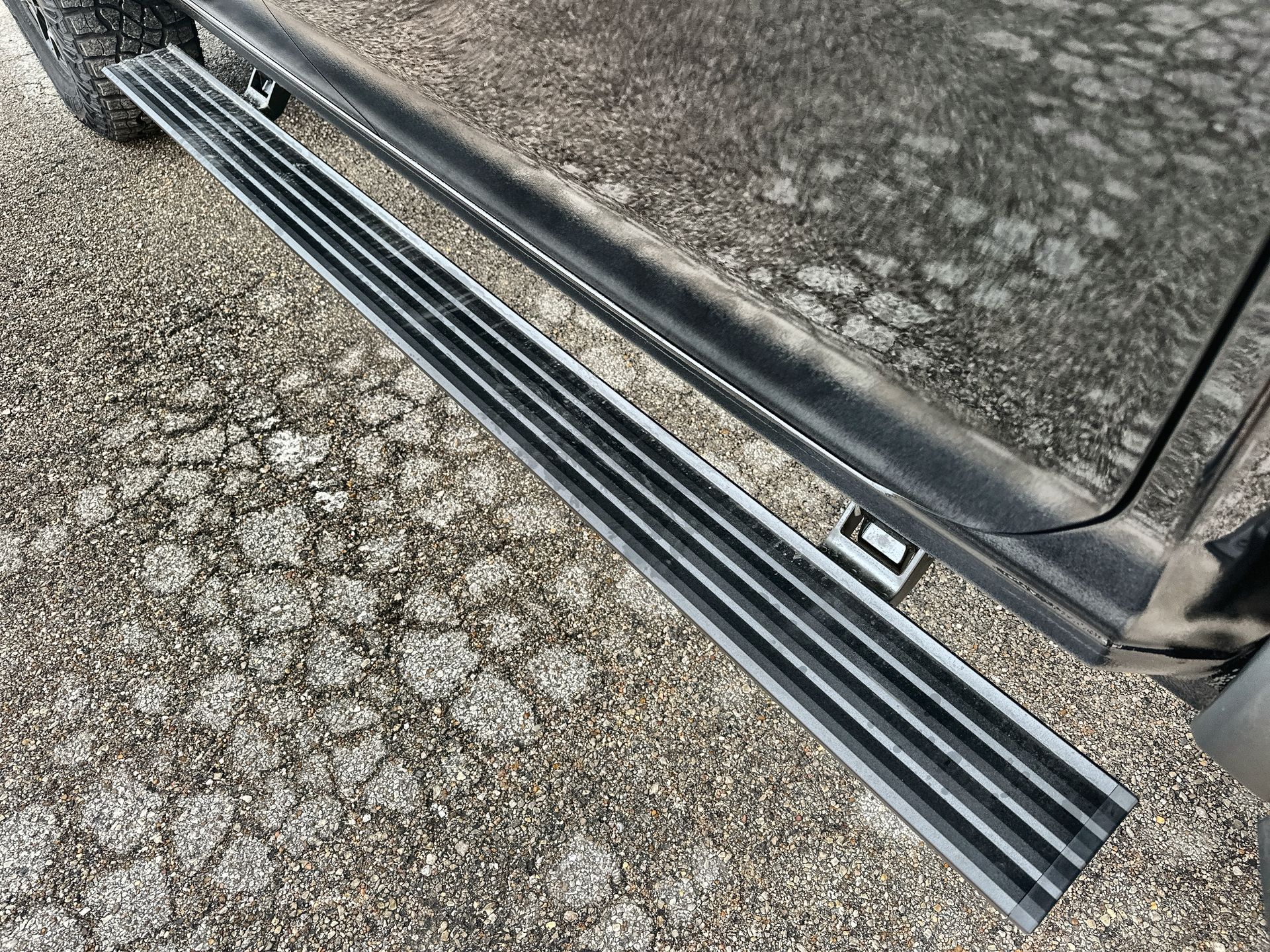 - Black power-retractable assist steps with LED perimeter lighting