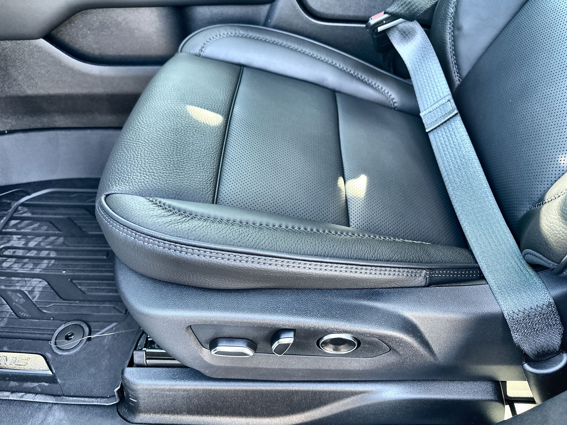 Floor Liner Package (3rd Row All-Weather Floor Liners, All-Weather Cargo Mat, and First and Second Rows Premium Floor Liners), Sun and Power Step Package (Dual-Pane Panoramic Power Sunroof and Power-Retractable Assist Steps), 4WD, 10 Speakers, 15 Diagonal Multi-Color Head-Up Display, 3 Years OnStar One, 3.23 Rear Axle Ratio, 3rd row seats: split-bench, 4-Way Power Driver Lumbar Seat Adjuster, 4-Way Power Front Passenger Lumbar Seat Adjuster, 4-Wheel Disc Brakes, ABS brakes, Adaptive suspension, Air Conditioning, Alloy wheels, AM/FM radio: SiriusXM with 360L, Apple CarPlay/Android Auto, Audio memory, Auto High-beam Headlights, Auto-dimming door mirrors, Auto-dimming Rear-View mirror, Auto-leveling suspension, Automatic temperature control, AutoSense Hands-Free Power Liftgate, Bodyside moldings, Bose 10-Speaker Surround with CenterPoint, Brake assist, Bright Front and Rear Door Sill Plates, Bumpers: body-color, Compass, Delay-off headlights, Driver door bin, Driver vanity mirror, Dual Exhaust System, Dual front impact airbags, Dual front side impact airbags, Electronic Stability Control, Emergency communication system: OnStar and GMC connected services capable, Exterior Parking Camera Rear, Four wheel independent suspension, Front anti-roll bar, Front Bucket Seats, Front Center Armrest, Front dual zone A/C, Front fog lights, Front reading lights, Fully automatic headlights, Galvano Bodyside Moldings, Garage door transmitter, Heads-Up Display, Heated door mirrors, Heated Driver and Front Passenger Seats, Heated front seats, Heated rear seats, Heated steering wheel, Illuminated entry, Low tire pressure warning, Magnetic Ride Control Suspension, Memory seat, Navigation system: GMC Connected Navigation, Occupant sensing airbag, Outside temperature display, Overhead airbag, Overhead console, Panic alarm, Passenger door bin, Passenger vanity mirror, Perforated Leather Seating Surfaces, Power door mirrors, Power driver seat, Power Liftgate, Power passenger seat, Power Release 2nd Row Bucket Seats, Power steering, Power Tilt and Telescopic Steering Column, Power windows, Radio: 16.8 Diagonal Premium GMC Infotainment System, Rain sensing wipers, Rear air conditioning, Rear anti-roll bar, Rear reading lights, Rear window defroster, Re