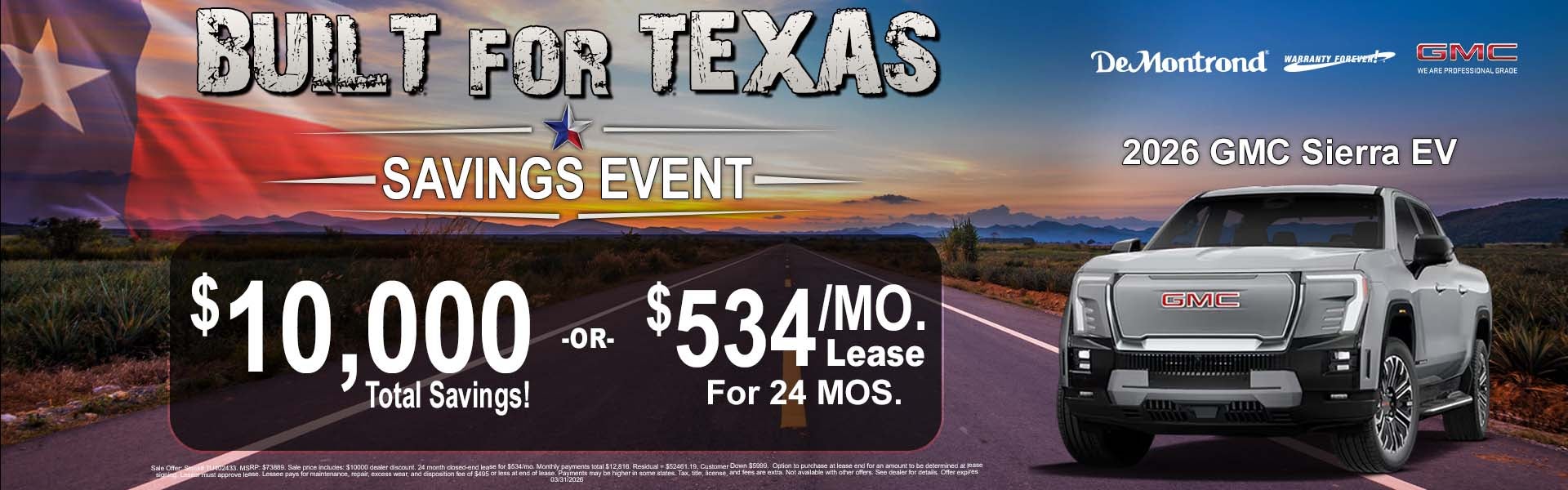 *Credit restrictions may apply. Dealer Discounts available to everyone. Certain other manufacturer offers may not be available to everyone. Pricing includes every available current offer from manufacturer. Ask your dealer for details. All prices on this web site are subject to change without notice. Though we make every effort to provide you the most accurate, up-to-date information, occasionally, one or more vehicles on our web site may be incorrect due to typographical, photographic, occasional human or technical error. We reserve the right to refuse to honor any incorrect Internet prices as we cannot account for the occasional human or technical error. Discounted prices include all available applicable Factory Rebates and Incentives and Dealer Discount. All prices plus Sales Tax, Title, License Fee, and Registration Fee. Please contact dealer for details. Manufacturer's/Distributor's Rebate subject to residency restrictions. Any customer not meeting the residency restriction will receive a dealer discount in the same amount of the manufacturer's/distributor's rebate. If you live in the following California Emissions States of CA, CT, DE, MD, ME, NJ, NY, OR, PA, RI, VT, and WA, please be aware that those states will not title a new vehicle from Texas because the MSO is not listed as being a 50 State/California Emission Vehicle. Tax, title, license (unless itemized above) are extra. Not available with special finance, lease and some other offers. Manufacturer’s Rebate subject to residency restrictions. Any customer not meeting the residency restrictions will receive a dealer discount in the same amount of the manufacturer’s rebate. By requesting information, you agree that DeMontrond (Dealership) and its affiliates, and sales professionals may call/text you about your inquiry, which may involve use of automated means and prerecorded/artificial voices. Message/data rates may apply.