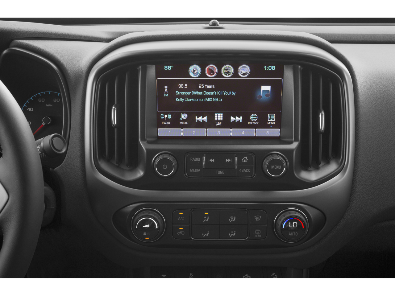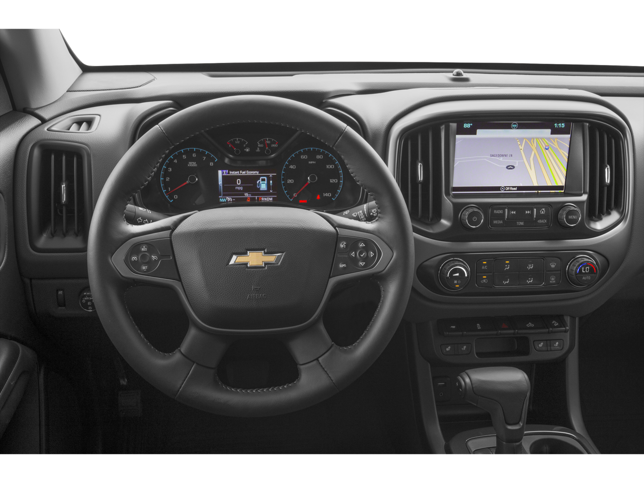 Exterior Convenience Package (LPO) (5 Rectangular Black Assist Steps (LPO) and Front & Rear Splash Guards), Interior Protection Package (LPO) (All-Weather Floor Mats and Rubber Bed Mat), Preferred Equipment Group 2Z7, 4-Way Power Front Passenger Seat Adjuster, 4-Wheel Disc Brakes, 6 Speakers, 6-Speaker Audio System Feature, ABS brakes, Air Conditioning, Alloy wheels, AM/FM radio: SiriusXM, Auto-dimming Rear-View mirror, Automatic temperature control, Bumpers: body-color, Cloth/Leatherette Seat Trim, Compass, Delay-off headlights, Driver 4-Way Power Seat Adjuster, Driver door bin, Driver vanity mirror, Dual front impact airbags, Dual front side impact airbags, Electronic Stability Control, Emergency communication system: OnStar Directions & Connections, Exterior Parking Camera Rear, Front anti-roll bar, Front Bucket Seats, Front Center Armrest, Front fog lights, Front License Plate Kit, Front reading lights, Front wheel independent suspension, Fully automatic headlights, Heated Driver & Front Passenger Seats, Heated front seats, Illuminated entry, Low tire pressure warning, Occupant sensing airbag, Outside temperature display, Overhead airbag, Overhead console, Panic alarm, Passenger door bin, Passenger vanity mirror, Power door mirrors, Power Driver Lumbar Control Seat Adjuster, Power driver seat, Power Passenger Lumbar Control Seat Adjuster, Power passenger seat, Power steering, Power windows, Premium audio system: Chevrolet MyLink, Radio data system, Radio: AM/FM/SiriusXM w/Chevrolet MyLink, Rear reading lights, Rear seat center armrest, Rear step bumper, Rear window defroster, Remote keyless entry, Security system, SiriusXM Satellite Radio, Speed control, Speed-sensing steering, Steering wheel mounted audio controls, Tachometer, Telescoping steering wheel, Tilt steering wheel, Tow/Haul Mode, Traction control, Trip computer, Variably intermittent wipers, and Wheels: 17 x 8 Dark Argent Metallic Cast Alloy.