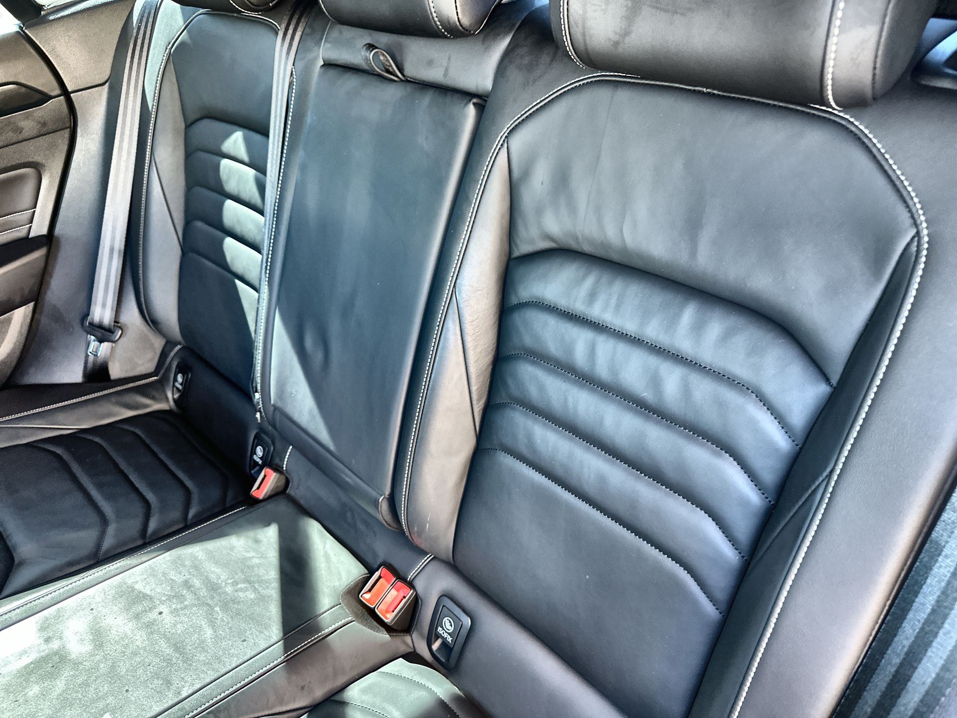 12 Speakers, 4-Wheel Disc Brakes, ABS brakes, Adaptive suspension, Air Conditioning, Alloy wheels, AM/FM radio: SiriusXM with 360L, Auto High-beam Headlights, Auto-dimming door mirrors, Auto-dimming Rear-View mirror, Automatic temperature control, Brake assist, Bumpers: body-color, Compass, Delay-off headlights, Driver door bin, Driver vanity mirror, Dual front impact airbags, Dual front side impact airbags, Electronic Stability Control, Emergency communication system: VW Car-Net Safe & Secure 5-year, Four wheel independent suspension, Front anti-roll bar, Front Bucket Seats, Front Center Armrest, Front dual zone A/C, Front fog lights, Front reading lights, Fully automatic headlights, harman/kardon® Speakers, Heated door mirrors, Heated Front Comfort Sport Seats, Heated front seats, Heated rear seats, Heated steering wheel, Illuminated entry, Knee airbag, Leather Shift Knob, Leather steering wheel, Low tire pressure warning, Memory seat, Navigation System, Occupant sensing airbag, Outside temperature display, Overhead airbag, Overhead console, Panic alarm, Passenger door bin, Passenger vanity mirror, Perforated Nappa Leather Seating Surfaces, Power door mirrors, Power driver seat, Power Liftgate, Power moonroof, Power passenger seat, Power steering, Power windows, Radio data system, Radio: MIB3 Discover Media Navigation AM/FM/HD, Rain sensing wipers, Rear air conditioning, Rear anti-roll bar, Rear reading lights, Rear seat center armrest, Rear window defroster, Remote keyless entry, Security system, Speed control, Speed-sensing steering, Split folding rear seat, Spoiler, Sport steering wheel, Steering wheel mounted audio controls, Tachometer, Telescoping steering wheel, Tilt steering wheel, Traction control, Trip computer, Turn signal indicator mirrors, Variably intermittent wipers, Ventilated front seats, and Wheels: 20 x 8.0J 2-Tone Machined Alloy.